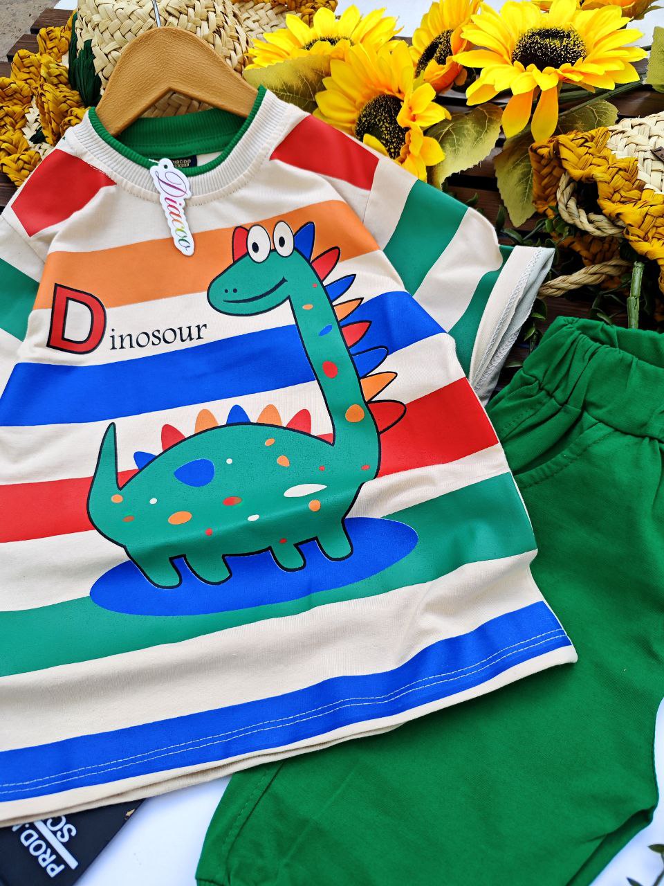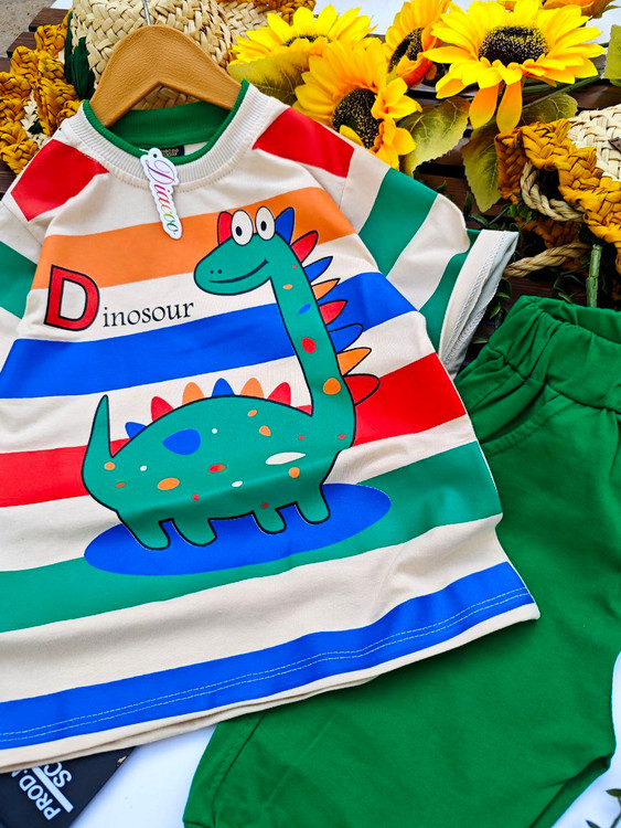 💣ست بلوز شلوارک دایناسور راه راه